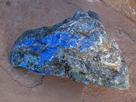 ![]() The geological type area for labradorite is Paul's Island near the town of Nain in Labrador, Canada. It has also been reported in Norway and various other locations worldwide. It occurs in large crystal masses in anorthosite and shows a play of colors called labradorescence. The labradorescence, or schiller effect, is the result of light refracting within lamellar intergrowths resulting from phase exsolution on cooling in the Boggild miscibility gap, An48-An58.