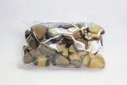 Your 20-30 mm tumbledstones will be similar to what is photographed. Each stone is approximately 0.5-1.25" andthere are about 30-60 pieces per lb. (This is anestimate, and we can not guarantee how many stones are in each bag.)