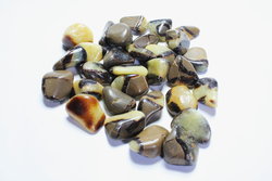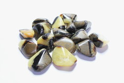 This Septarian is from our mines and factory inMadagascar Your 20-30 mm tumbledstones will be similar to what is photographed. Each stone is approximately 0.5-1.25" andthere are about 30-60 pieces per lb. (This is anestimate, and we can not guarantee how many stones are in each bag.) Discounts available for volume purchasing. Please call 520-882-8884 for more information.