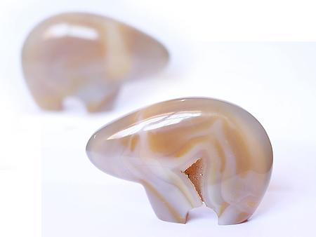 Every 2" tall x 3" wide Zuni style fetish bear is a uniquely colored, hand carved piece of Agate, from the heart of Madagascar. Perfect totem item for the naturalist in your life. Further discounts apply for quantity purchasing. It's better to buy your Agate Fetish Bear from your direct source of Agate. For more information, please call a Madagascar Minerals® sales representative (520) 882-8884.