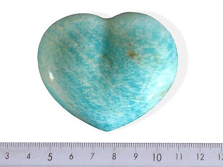 Scientific Properties: Color: Medium to dark green to blue green, translucent to opaque with fine white streaks Stone Type/Family: A variety of Microcline Feldspar Crystal System: Triclinic Chemical Composition: (KAlSi3O8) Potassium, Aluminum, Silicon, and Oxygen Hardness: 6-6.5 | | | Metaphysical Guide: Expression, Balance, Inspiration Primary Chakras: Heart, Throat, Thymus Third Eye Astrological sign(s): Virgo Primary Chakra: Heart, Throat, Thymus, Third Eye Vibration: Number 5 Amazonite is great for non-verbal expression. It is a good energy filter, blocking geopathic stress as well as electromagnetic pollution emitted from computers, microwaves, or cell phones. |