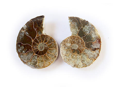Ammonite Cut & Polished Jewelry Pairs, 3-5cm - AA Quality (regular quality). The pairs of ammonites you will receive are similar to what is photographed, but not exact item. It is sure that this ammonite will capture your peak interest. For more information, please call a Madagascar Minerals® sales representative (520) 882-8884.