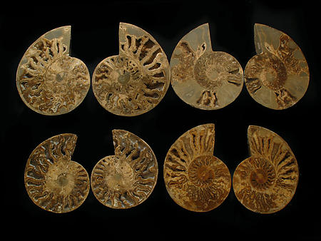 Ammonites Cut and Polished with Sutures (10-12 inch) AAA Quality. These Ammonites are mined from the Norcross-Madagascar Ammonites deposits in Madagascar. The pairs of Ammonite you will receive with this order are similar to what is photographed but not exact item.
