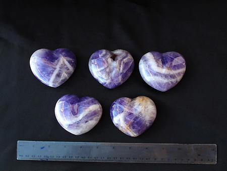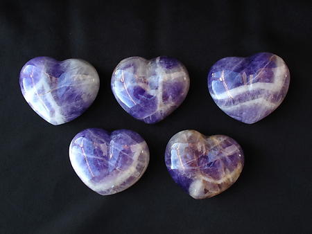 Scientific Properties: Stone Type/Family: Member of the Quartz family Color: Deep, grape purple with white striping and/or bands Crystal System: Trigonal Chemical Composition: (SiO2) Silicon Dioxide Hardness: 7 | Metaphysical Guide: Cleansing, Healing, Amplifying Primary Chakras: Third Eye, Crown Vibration: Number 2 Chevron Amethyst (also called "Banded Amethyst") is a combination of Amethyst and White Quartz, mixed together in a V-striped or banded pattern. Chevron Amethyst combines the strengthening and enhancing qualities of Quartz with the stress relieving qualities of Amethyst. |