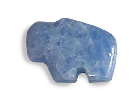 Every 2" tall x 3" wide Zuni style fetishbuffalo is a uniquely colored, hand carved piece of Blue Calcite, from the heart of Madagascar. Perfect totem item for the naturalist in your life. Discounts available for volume purchasing. For further information, please call a Madagascar Minerals® sales representative (520) 882-8884.