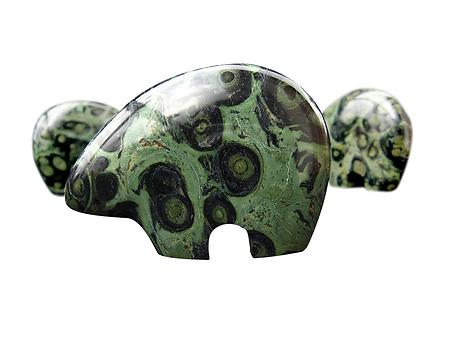 Scientific Properties of Jasper: Stone Type/Family: Silicates Crystal System: Trigonal Chemical Composition: SiO2 Silicon Dioxide with various inclusions/impurities Jasper is a member of chalcedony family. Color: Multi-colored, Solid. Yellow, Orange, Brown, Green Hardness: 6.5 - 7.0 Source of Crocodile Jasper: Africa, Madagascar | | | Metaphysical guide: Crocodile Jasper (also known as Kambamba Jasper) is an exotic looking jasper from Africa. It is said to mystically soothe the nerves and state of mind. As with other jaspers, traditional lore says that it is good for grounding and protection. It is purported to be beneficial for plant growth and health, particularly in arid environmentsor where the soil is poor. |