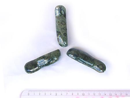 Crocodile Jasper Massage Tools - Handheld Design from our quarry. Explore the healing properties of this new gemstone. Recently discovered material. Locals call this stone Kambamba Jasper. The Crocodile Jasper Massage Tool(s) you will receive with this order is (are) similar to what is photographed. Discounts available for volume purchasing. It's better to buy your Crocodile Jasper Massage Tools from your direct source of Crocodile Jasper.
