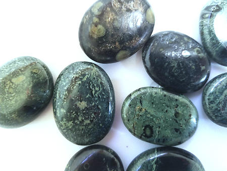 Crocodile Jasper (also known as Kambamba Jasper) is an exotic looking jasper from Africa. It is said to mystically soothe the nerves and state of mind. As with other jaspers, traditional lore says that it is good for grounding and protection. It is purported to be beneficial for plant growth and health, particularly in arid environmentsor where the soil is poor.