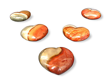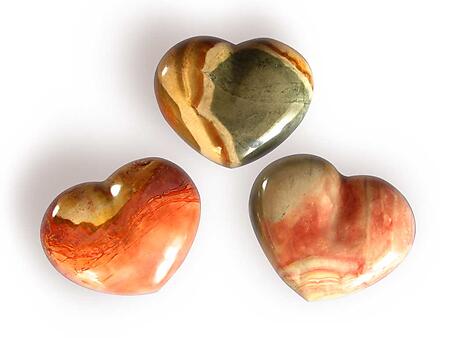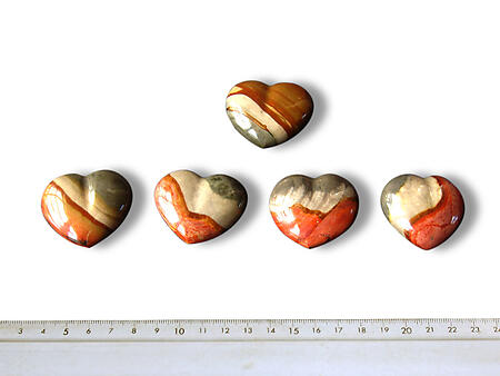 You will receive aproduct similar to what is photographed with this order. Please keep in mindthat the special thing about Desert Jasper is it is very diverse stone.Colors & patterns will vary from piece to piece. Heartsare approximately 1" wide, 0.25" thick, and weigh about 20 g.