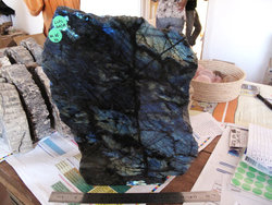 Labradorite Plaque - Large, mined from the Norcross-Madagascar (NMG) labradorite quarry. You will receive this Labradorite Plaque - Large (Weight: 20.85kg - 45.87lb, Length: 23cm, Height: 33cm, Width: 14.50cm), with this order. High Flash! 3rd photo is back side. Discounts available for volume purchasing It's better to buy your Labradorite Plaque from Madagascar Minerals, your direct source of Labradorite. Labradorite is a stone of transformation and change. See below the metaphysical guide of Labradorite. For more information, please call a Madagascar Minerals® sales representative (520) 882-8884.