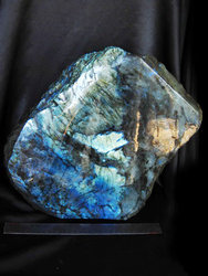 Labradorite Physical properties: Stone Type/Family: A member of the Feldspar family, Silicates Class Category: feldspar, tectosilicate Crystal System: Triclinic Cleavage: three directions Hardness: 6-6.5 Color: Gray, Green Gray, Black with colorful shillers most often in golds, greens, blues and violets