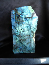 Labradorite Plaque - Large, mined from the Norcross-Madagascar (NMG) labradorite quarry. You will receive this Labradorite Plaque - Large (Weight: 5kg - 11lb; Height: 25.50cm; Length: 13cm; Width: 9.50cm), with this order. High Flash! 3rd photo is back side. Discounts available for volume purchasing For more information, please call a Madagascar Minerals® sales representative (520) 882-8884. It's better to buy your Labradorite from Madagascar Minerals, your direct source of Labradorite. Labradorite is a stone of transformation and change. See below the metaphysical guide of Labradorite.