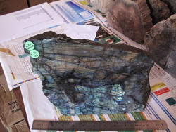 Labradorite Plaque - Large, mined from the Norcross-Madagascar (NMG) labradorite quarry. You will receive this Labradorite Plaque - Large (Weight: 9.70kg - 21.34lb, Length: 25cm, Height: 21cm, Width: 9.50cm), with this order. High Flash! 3rd photo is back side. Discounts available for volume purchasing It's better to buy your Labradorite Plaque from Madagascar Minerals, your direct source of Labradorite. Labradorite is a stone of transformation and change. See below the metaphysical guide of Labradorite. For more information, please call a Madagascar Minerals® sales representative (520) 882-8884.