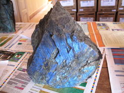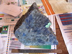 Labradorite Plaque - Large, mined from the Norcross-Madagascar (NMG) Peacock Blue Labradorite quarry. You will receive this Labradorite Plaque - Large (Weight: 9.86kg - 21.69lb, Length: 24cm, Height: 28cm, Width: 9cm), with this order. High Flash! 2nd photo is back side. It's better to buy your Labradorite from Madagascar Minerals, your direct source of Labradorite. Labradorite is a stone of transformation and change. See below the metaphysical guide of Labradorite. For more information, please call a Madagascar Minerals® sales representative (520) 882-8884.