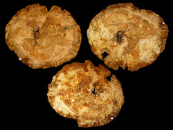 Chemical Composition: Fossil wood replaced by Chalcedony and sometimes also by Opal, Coal, Pyrite and/or Calcite.
