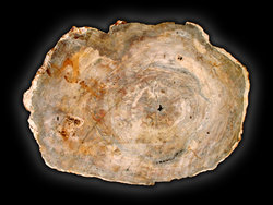 Chemical Composition: Fossil wood replaced by Chalcedony and sometimes also by Opal, Coal, Pyrite and/or Calcite.