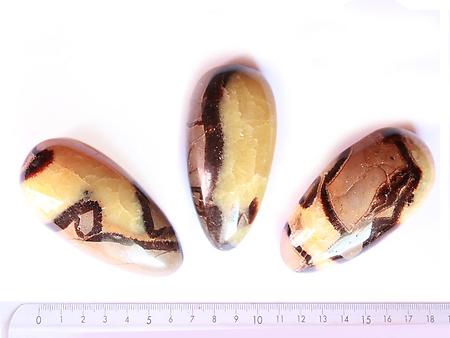 Septarian is a geode that is a combination of yellow calcite, brown aragonite, grey limestone and white/clear barite, thus it has properties of each of its component minerals.