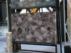 Smoky Quartz Table Top (140 x 83 x 3 cm). You will receive one Table Top, similar to what is photographed, with this order. 3rd photo is back lit. This Smoky Quartz was mined from the Norcross-Madagascar quarry, and manufactured by Gem Surfaces®, another NMG division.