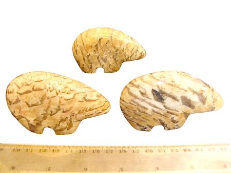 Zebradorite Fetish Bear. This Zebradorite was mined from Norcross-Madagascar quarry. You will receive your piece(s) of Zebradorite Fetish Bear carving(s), similar to what is photographed with this order. Discounts available for volume purchasing. Container quantities available, for those interested. For more information, please call a Madagascar Minerals® sales representative (520) 882-8884. Zebradorite is a graphic quartz. Rural miners in Madagascar came across this varietyof Feldspar which they called (in French and Malagasy) "Feldspath". It's better to buy your Zebradorite products from your direct source of Zebradorite.