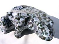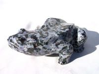 Indigo Gabbro Large Frog. This Indigo Gabbro was mined from the Norcross-Madagascar Indigo Gabbro quarry. You will receive (1) Indigo Gabbro Large Frog carving with this order $430/Pc, similar to what is photographed. Discounts available for volume purchasing. It's better to buy your indigo Gabbro from your direct source of Indigo Gabbro. Please, contact a Madagascar Minerals? sales representative for more information (520) 882-8884.