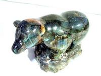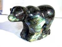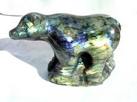Labradorite Bear "Standing on Rough". This Labradorite was mined from the Norcross-Madagascar Labradorite quarry, located in the south of Madagascar. Labradorite found in Madagascar is one of the best Labradorite on the world. You will receive (1) carving with this order $506/Pc, similar to what is photographed. Discounts available for volume purchasing of this Labradorite product. Please, contact a Madagascar Minerals? sales representative for more information (520) 882-8884. It's better to buy your Labradorite from Madagascar Minerals?, your direct source of Labradorite. Labradorite is a stone of transformation and change. See below the metaphysical guide of Labradorite.