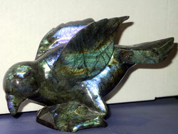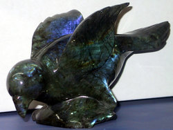 This carving of a dove truely denotes the peaceful dignity of the Labradorite it is carved from. This piece has multiple colors of flash and will come to life from almost every angle. A must have edition for any collector.