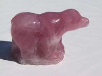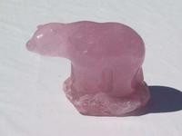 Rose Quartz Bear "Standing on Rough". This Rose Quartz was mined from the Norcross-Madagascar Quarry. You will receive one piece of Rose Quartz Bear Standing on Rough, similar to what is photograhed, with this order. $365/pc. Discounts available for volume purchasing. For more information, please call a Madagascar Minerals sales representative (520) 882-8884.