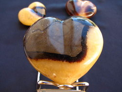 Septarian Scientific Properties: Septarian is a geode that is a combination of yellow calcite, brown aragonite, grey limestone and white/clear barite, thus it has properties of each of its component minerals. Color: Yellow, brown, white, clear | Metaphysical guide: Septarian is a healing stone beneficial to overall health and well being. Opens psychic abilities Gives relief for muscle spasms Nurtures and grounds Chakra: Root Chakra Energies: Healing Septarian brings calming energies which have a nurturing feel to them, and can bring feelings of joy and spiritual uplifting. Septarian is used to enhance and nurture. |